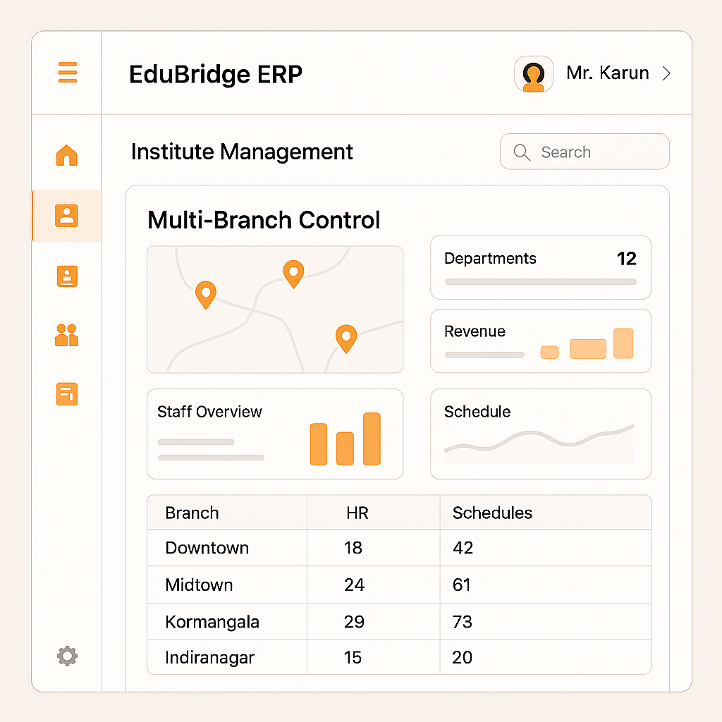Centralize operations for multi‑branch institutions: HR, inventory, student lifecycle, scheduling, and analytics in one platform.